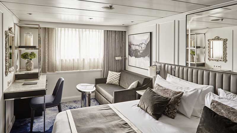 Att stiga ombord på Riverside Mozart är att kliva in i en värld av femstjärnig lyx. Här är varje svit designad som en privat oas av stil och komfort. Vakna upp i en king size-säng bäddad med de finaste textilierna och njut av den sofistikerade känslan i marmorbadrummet. Efter dagens upptäckter kan du luta dig tillbaka i en elegant soffa eller fåtölj och låta dagens intryck sjunka in i fullständig avslappning.